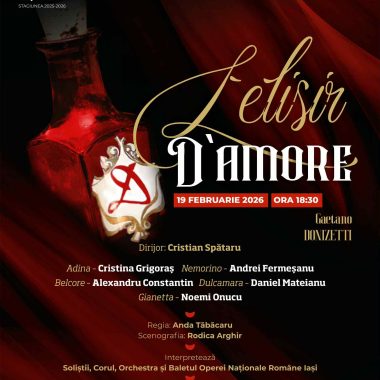 Vă așteptăm pe 19 februarie la spectacolul „L`elisir d`amore” de Gaetano Donizetti.