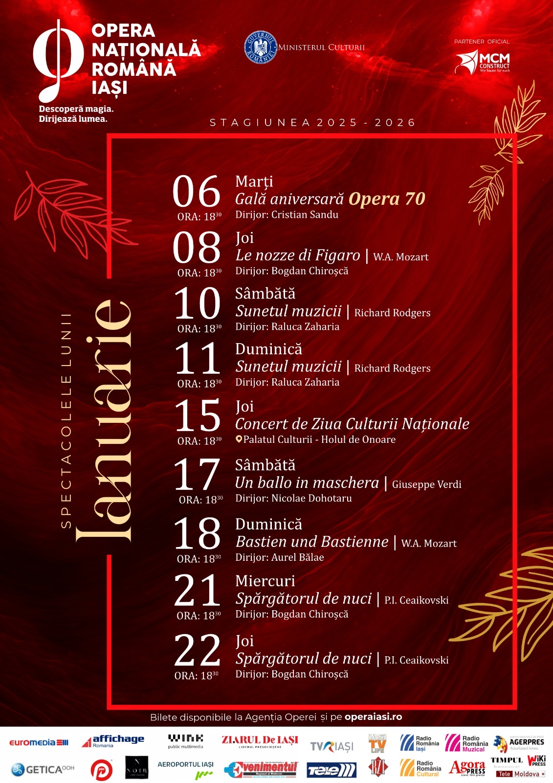 Ministerul Culturii organizează, la sediul său din Bd. Unirii nr. 22, în conformitate cu prevederile Ordonanţei de urgenţă a Guvernului nr. 189/2008 privind managementul instituţiilor publice de cultură, aprobată prin Legea nr. 269/2009, cu modificările şi completările ulterioare și ale Ordinului ministrului culturii nr. 2799/2015 pentru aprobarea Regulamentului-cadru de organizare şi desfăşurare a concursului de proiecte de management, a Regulamentului-cadru de organizare şi desfăşurare a evaluării managementului, a modelului-cadru al caietului de obiective, a modelului-cadru al raportului de activitate, precum şi a modelului-cadru al contractului de management, concursul de proiecte de management pentru Opera Națională Română din Iași.