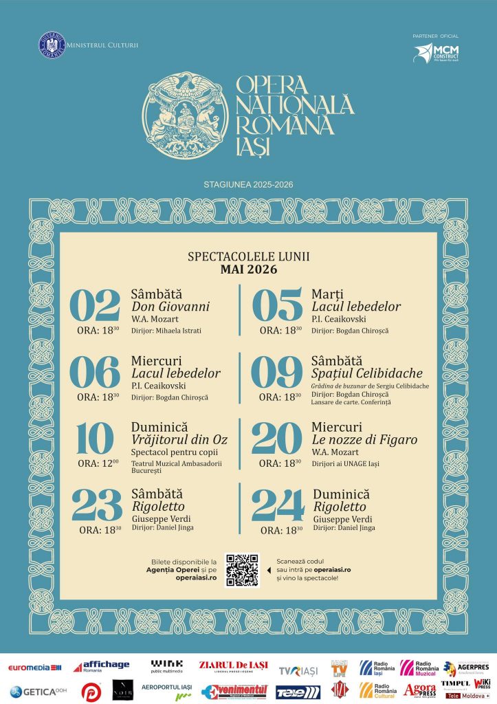 Biletele pentru reprezentațiile lunii mai sunt disponibile începând de joi, 16 aprilie, ora 12:00, online pe operaiasi.ro și de la Agenția Operei.