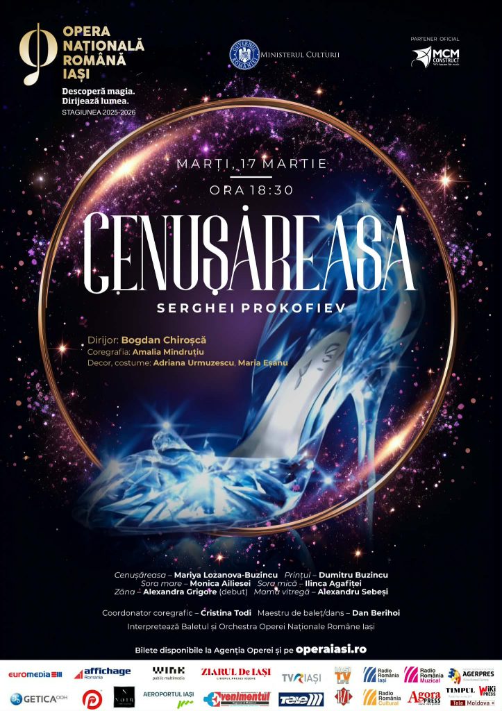 Marți, 17 martie, de la ora 18:30, baletul și orchestra Operei din Iași vă propun o călătorie de basm spre o lume feerică, unde răsplata pentru nedreptate este colorată cu situații comice, iar triumful asupra opresiunii are o energie explozivă.