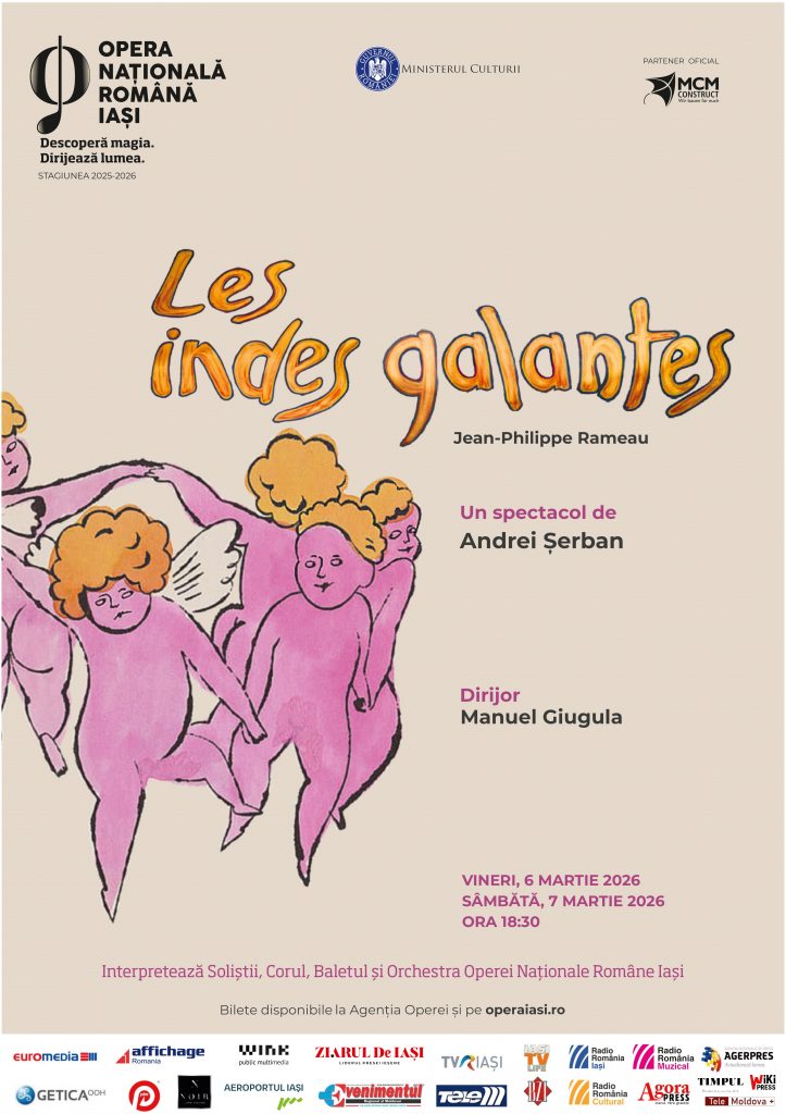 Rafinamentul baroc al operei Les indes galantes de Jean-Philippe Rameau revine pe scena lirică ieșeană pe 6 martie, de la ora 18:30, cu o nouă reprezentație spectaculoasă.