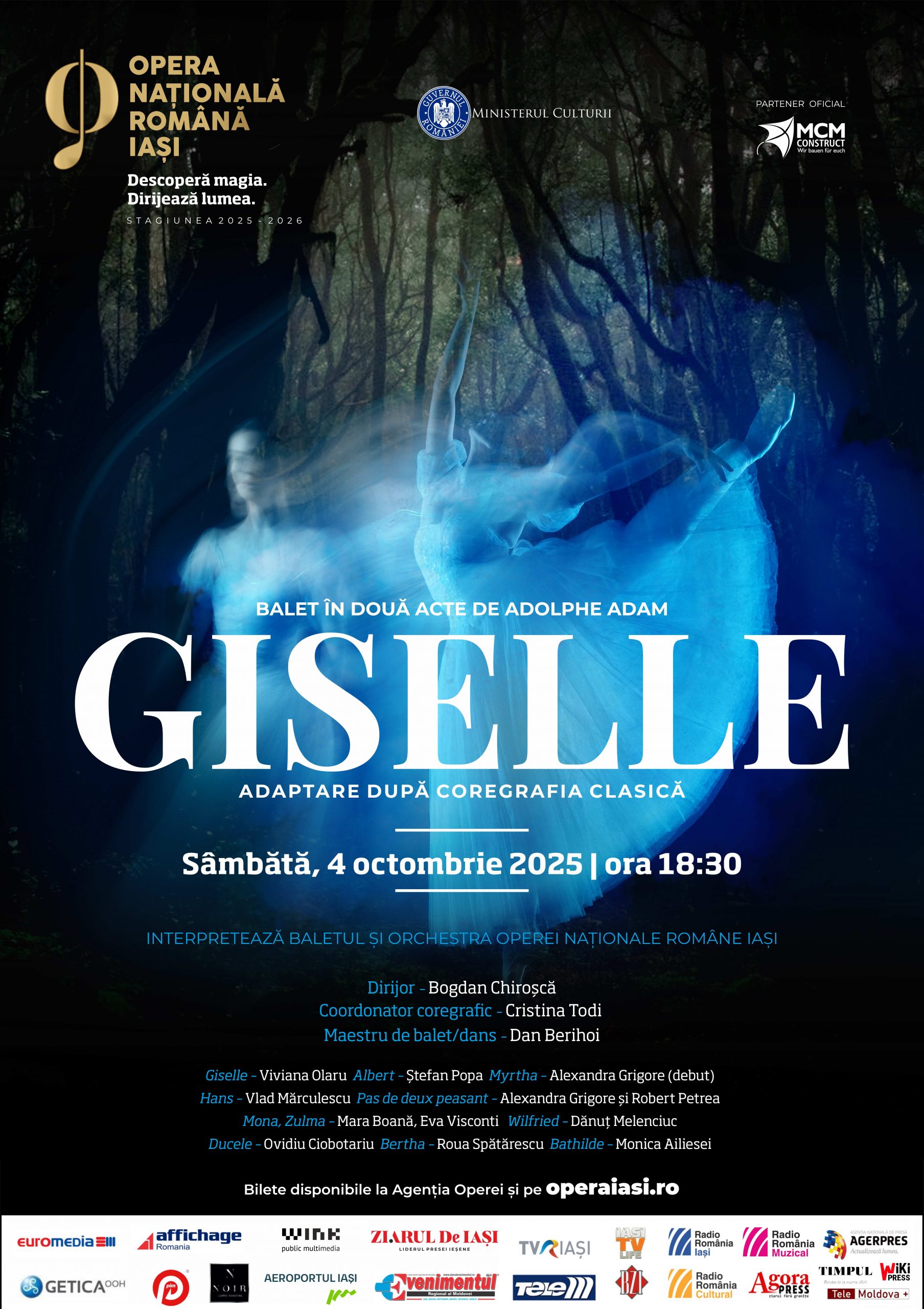 Capodopera romantică a lui Adolphe Adam, GISELLE, revine cu întreaga sa forță emoțională, aducând pe scenă pasiunea, trădarea și sacrificiul transfigurat în iubire pură.