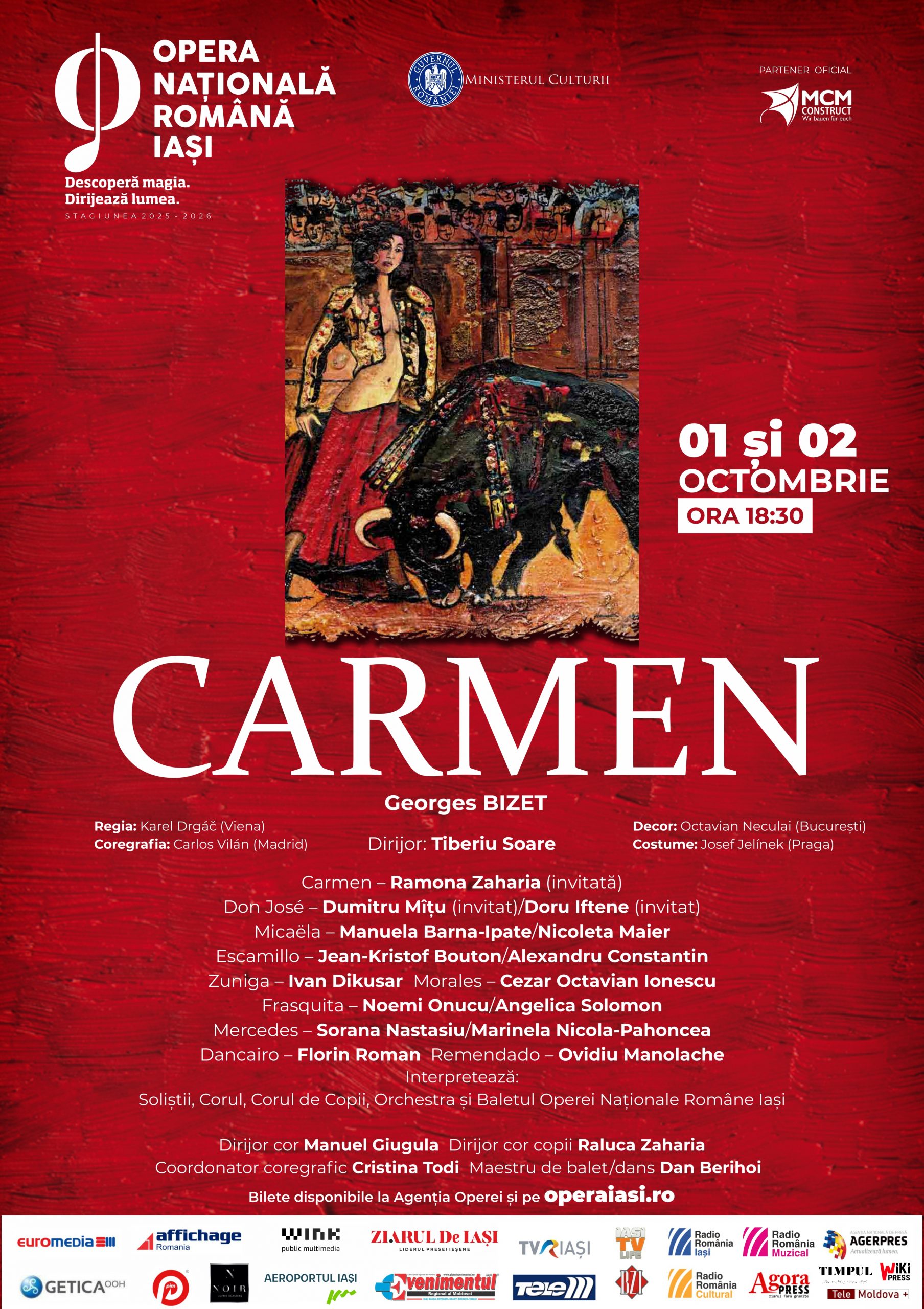 Vă invităm joi, 2 octombrie, începând cu ora 18:30, să vă lăsați seduși de provocatoarea Carmen, protagonista din nemuritoarea operă a lui Georges Bizet.