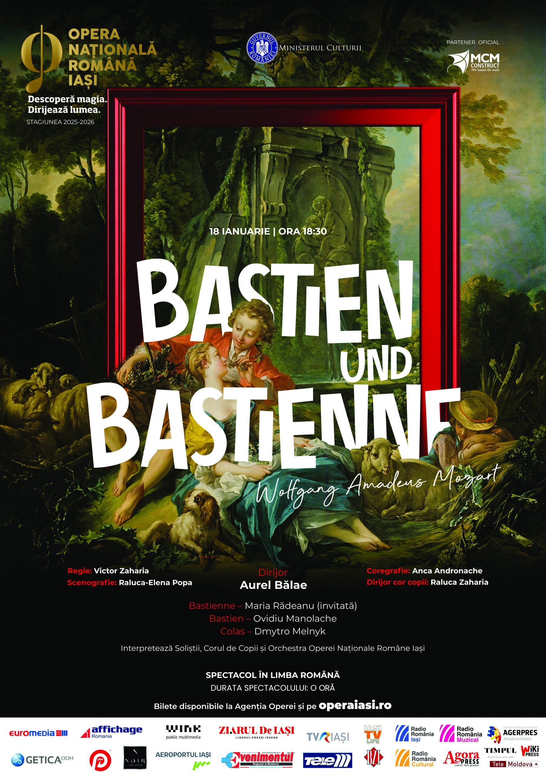 Duminică, 18 ianuarie, de la ora 18:30, vă invităm la spectacolul Bastien und Bastienne de Wolfgang Amadeus Mozart.